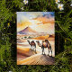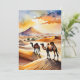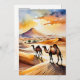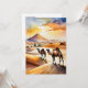 This postcard features a watercolor portrait of two camels walking through the Sahara desert.