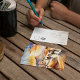 We got these postcards of places with all of our travels for people to send out notes at our wedding! .