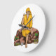 Purchased this online and it got delivered quickly. It was a present for my Dads 70th birthday. He loves clocks so decided to get him one with something written on it. Battery went in and it started working straight away. Dads had no issues with it. Printing was just how it came up online.