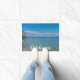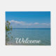 A welcome doormat that can be customised featuring a sailboat floating through the beautiful blue waters of Lake Huron at Mackinac Island Michigan.