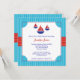 Cute, modern and colourful baby shower invitation. This invitation is ideal for a baby shower with a nautical theme. It features sail boats inside an ornate frame in a red, blue and white colour palette.
