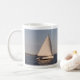 A lone sail boat . Full wrap mug.