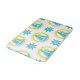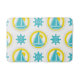 Introducing our "Sail Boat Nautical Pattern Bath Mat," adorned with a delightful arrangement of small blue sailboats enclosed in a yellow-bordered circle, complemented by nautical helm blue steering wheels. This unique and stylish bath mat is a "wonderful pattern" that serves as a great upgrade to your bath or shower space.