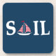 Sail text design illustration with sailing boat decoration on dark blue background. It is possible to change the background colour and to add different one to the design with your choice.