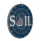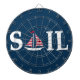 Sail text design illustration with sailing boat decoration on dark blue background. It is possible to change the background colour and to add different one to the design with your choice.