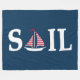 Sail text design illustration with sailing boat decoration on dark blue background. It is possible to change the background colour and to add different one to the design with your choice.
