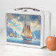 This is a standard metal lunchbox that appears to work just fine. We designed this box ourselves with an uploaded photo and custom text on the front and back. It looks absolutely beautiful except the front of the lunchbox is not centered like it shows in the photo. The print borders don't align with the inset flat part of the box where the preview photo online showed it perfectly centered in there. The back looks nice and centered though.