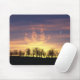 Behind the silhouettes of bare leafless winter tress a phantom ship sails through the clouds of a sunset sky.