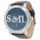Sail text design illustration with sailing boat decoration on dark blue background. It is possible to change the background colour and to add different one to the design with your choice.