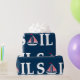 Sail text design illustration with sailing boat decoration on dark blue background. It is possible to change the background colour and to add different one to the design with your choice.