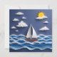 Cute postcard to keep in touch with a sailboat and sunshine illustrated in a paper quilling effect.