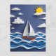 Cute postcard to keep in touch with a sailboat and sunshine illustrated in a paper quilling effect.