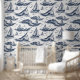 This is an elegant pattern design of sailboats crossing a wavy sea. It has a bluish colour scheme and perfect for study rooms.