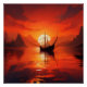 A serene artwork showcasing a sailboat on calm waters during a fiery red sunset, adding a tranquil, nautical touch to any space or product. Perfect for sunset lovers and sailors.