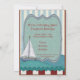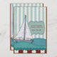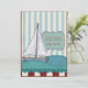 Masculine sailboat birthday. Sailboat on the wavy sea, with a blue striped background