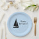 Simple classic nautical design of a sail boat with Happy Birthday .