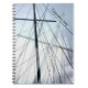 Log your notes, plans and dreams in this Captain's Log spiral notebook It is an abstract design of black lines against shades of blue and white that is actually sailboat masts against a cloudy sky.