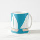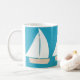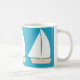 This classic white mug is designed with my depiction of three white sailboats on a turquoise background.