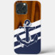 Sailboat Navy Blue White Stripe Wood Grain Pattern Case-Mate iPhone Case