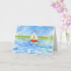 Red bottom sailboat drifting on a beautiful, clear summer day, takes our minds far way from our troubles. The refections in the water glisten to brighten the darkest day, Blank inside for your special thoughts. Original watercolor artwork and design by Audrey Ascenzo.❤️