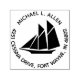 Nautical theme for sailors and sailing fans. Custom name and address round return address self inking stamp for sailing enthusiasts featuring a sailboat illustration. Personalise by replacing the sample name and address with your own info. Lovely way to show your love for the water, sea and sailing and add a unique touch to your correspondence.