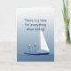 A graphic sailboat illustration with two sailors praying on a greeting card by artist/designer Charmaine Paulson. The customisable text says “There is a time for everything when sailing! The greeting card has text templates for your personalisation. ©2013charmainepaulson
