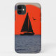 Beautiful image with a sail boat on a calm sea at the end of a day with a huge sun