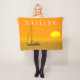 Sailboat Sunset Orange Sky Large Sun, White Text Fleece Blanket