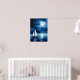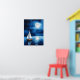 Poster in an illustration of a sailboat drifting peacefully on a calm, moonlit sea, surrounded by a starry night sky. The full moon casts a gentle reflection on the water, creating a serene and tranquil scene.
