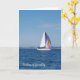 Colorful spinnaker on sailboat with blue water Lake Michigan shoreline for thinking of you.