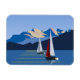 This captivating picturesque scene where sailboats gracefully glide across a serene body of water, their white sails billowing against the backdrop of majestic, snow-capped mountains. The juxtaposition of the tranquil lake and the towering peaks creates a breathtaking vista that evokes a sense of awe and adventure in the heart of nature.