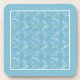 A set of six cork-backed coasters or table mats, with a nautical theme of sailing boats and seagull in white on a light sea blue background.