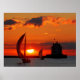 Sailboats at sunset near the Lorain lighthouse on Lake Erie in Ohio.