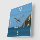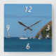 Sailboats in the Bay White and Blue Nautical Square Wall Clock