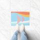 Dreamy abstract print doormat, featuring weathered look sailing boats on the ocean waves. Perfect for the beach house, for sailors, and yachtsman.
