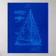 Sailboat blueprint with blue graph paper background. This is design no. 5 in our series.