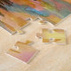 a decorative watercolor artwork of a sailing boat drifting on the ocean under a colourful sunset sky with colourful reflections in the water as a jigsaw puzzle.