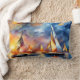 Sailing boats race abstract modern blue red sun lu lumbar cushion