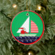 Creative sailing nautical Christmas ornament holiday gift featuring funny Santa sailor in a sailboat. To personalize edit text to add name or otherwise customize.