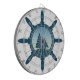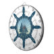 Nautical design with sailing boat and wheel decoration on white background