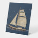 Sailing in Style Across the Blue Pedestal Sign