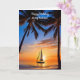 A sailboat glides through calm tropical waters, as the sun sets and palm trees frame the scene on this birthday card for your husband. The greeting on the front can be changed or omitted.