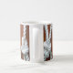 Four knots displayed on brown leather background and displayed as four panels that wrap around mug. Great gift for sailing enthusiasts, yacht or boat owners or anyone who loves a touch of the sea. The knots: sheet bend, poacher's knot, carrick bend, and bowline.