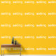This sporty, modern design features horizontal white sleek SAILING text against a bright yellow orange background. The text and colours in this design can be personalised.
