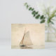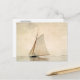 A fine art postcard with the realist painting, Sailing off Gloucester (1880), by the American artist Winslow Homer (1836-1910). A seascape of a man sailing a yacht in the harbour.
