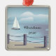 A vector graphic illustration of a sailboat on the water by artist/designer Charmaine Paulson on a Premium Christmas Ornament. The ornament has (customisable) text "Living the Dream".
