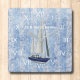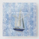 This nautical themed clock can be personalised with your own name or other text. Regal looking sailboat in navy blue and white on a blue grunge background, accented with white roman numeral digits. Your choice or round in two sizes or square. Created in part with art from Angela Wenke at resaleclipart.com