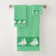 Beautiful sailing yacht pattern on emerald green background Bath Towels.