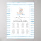This baby shower seating chart sign features a timeless blue stripe design with a sweet watercolour sailor teddy bear illustration. The script "welcome" heading is an image that cannot be edited. All of the other text is fully editable. For more advanced customisation of this design, simply select the "Customise It" button above.