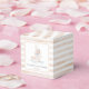 These baby shower favour box feature a timeless tan stripe design with a sweet watercolour sailor teddy bear illustration. All of the text is fully editable. For more advanced customisation of this design, simply select the "Customise It" button above.